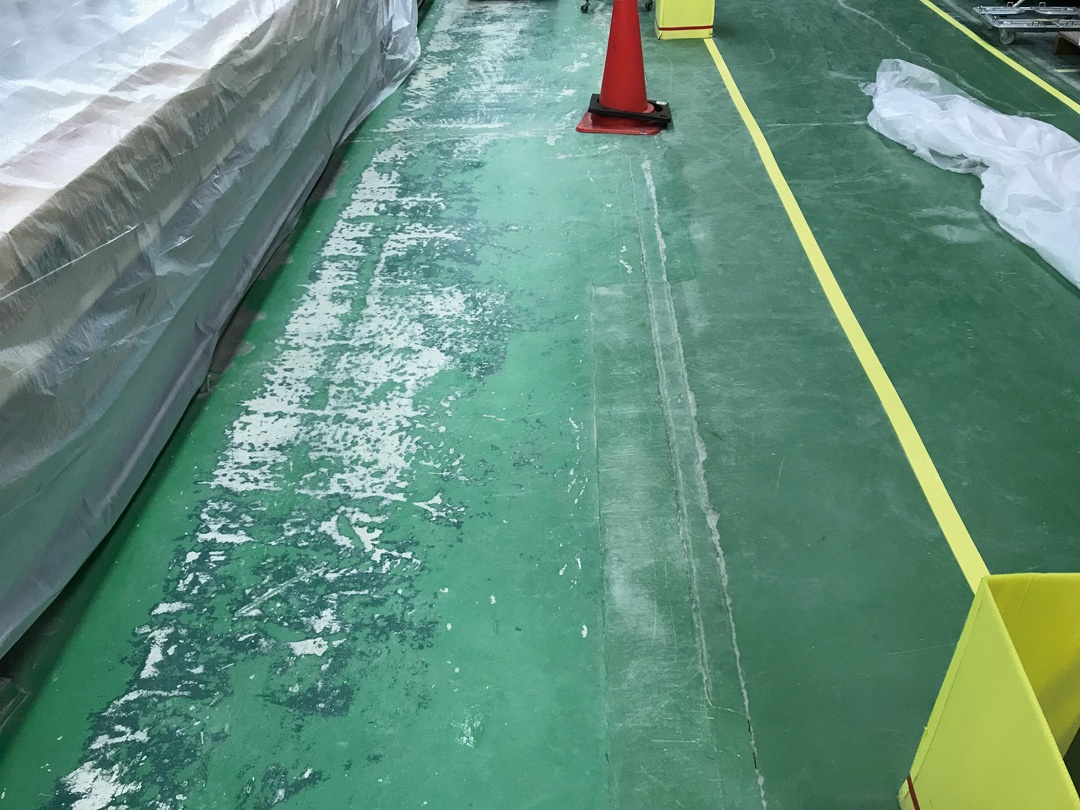 台車等の往来で床面がひび割れや段差が生じている為、部分補修実...