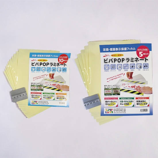 床面等を汚れや傷から守る「保護フィルム」のほか、剥がした際の糊残りも少ない「ラインテープ」、塗料を使わないため短時間で施工できる「歩行帯フィルム」などをラインアップ。