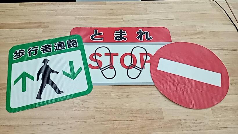 屋外や屋内の様々な床材(石・タイル・アスファルト・ コンクリートなど)に貼り付け可能な超耐久のサインです。