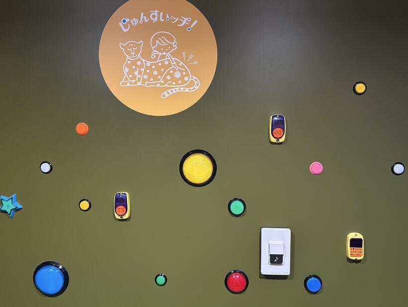 日常の中でよく目にするいろんなボタンを実際に押して体験できるエリアで、
