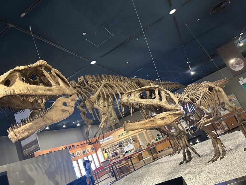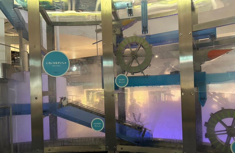 他にも、実物大の恐竜の骨の展示や、水が色々な動きをする水車など、
