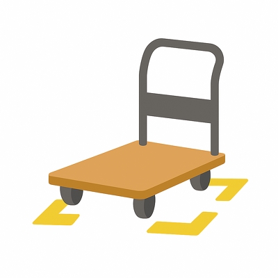 位置決めテープを床に貼るだけで、パレット・台車の定置が視覚化。