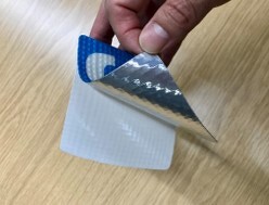 凹凸面にも貼れる理由は、画像にある様なアルミ粘着層です。