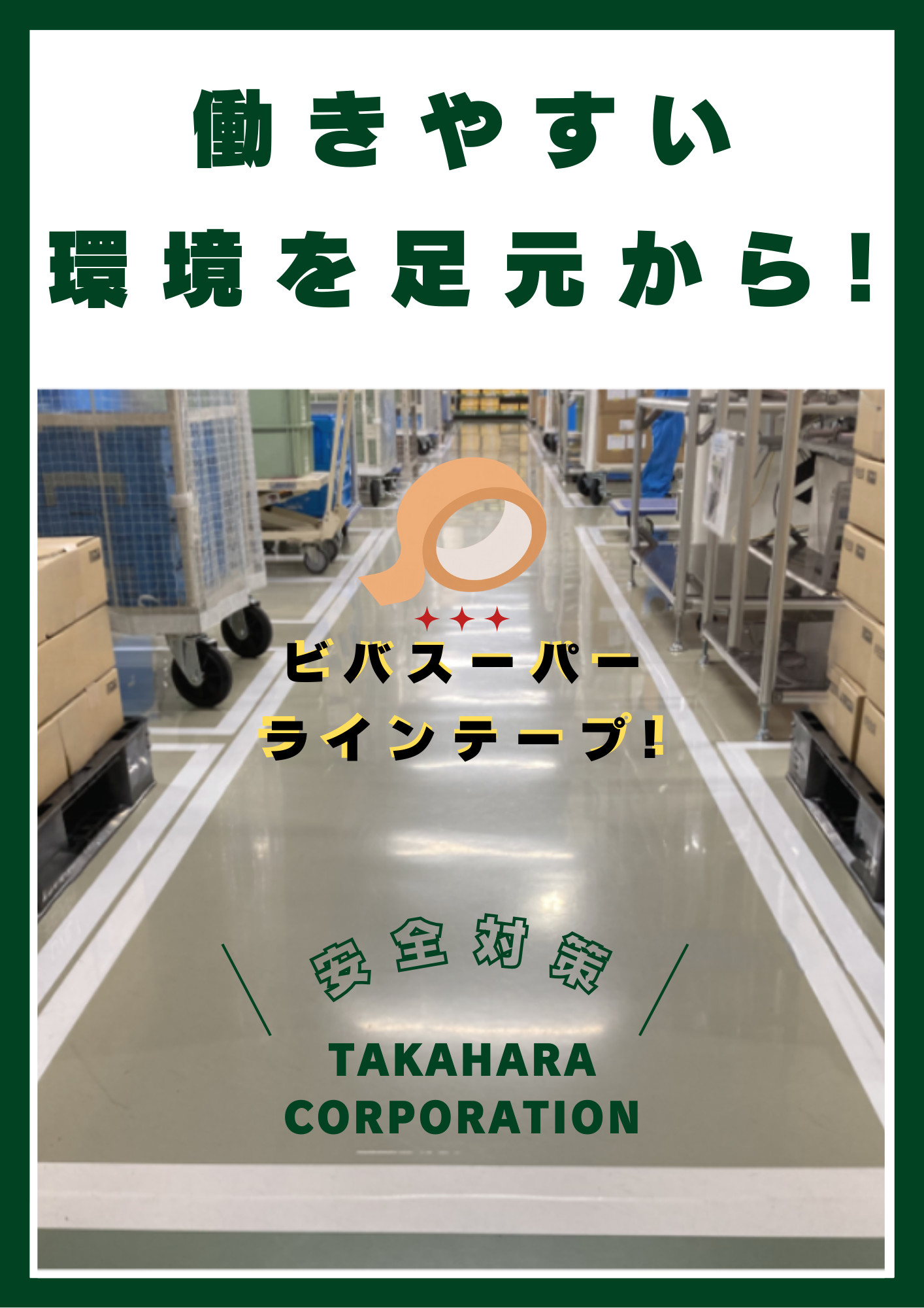 ブース内床面に「ビバ歩行帯フイルム」各色貼付け、