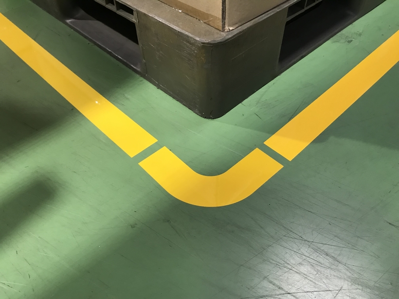 ④工場や倉庫内での床面の仕切りや区画ラインを作成する際に活用できる「T字テープ」