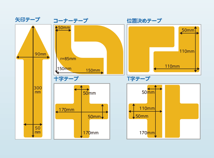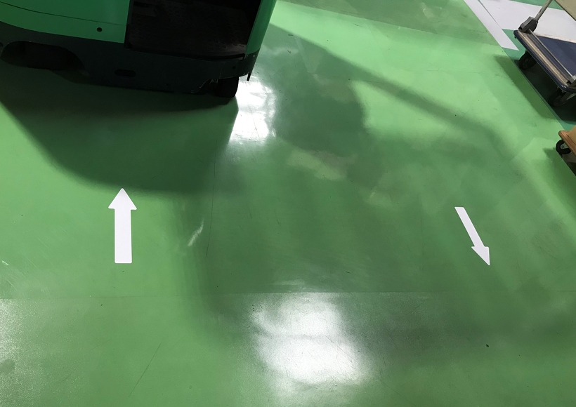 床に簡単に貼り付けるだけで、進行方向の表示や黒ずみを防ぎ、現場効率をアップさせます。