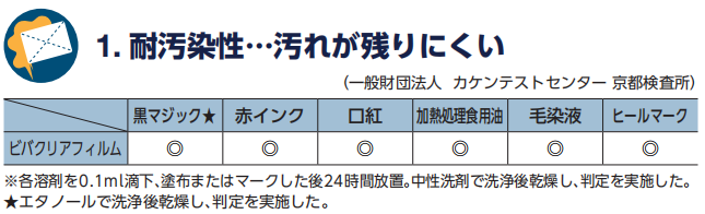 フィルム表面に独自のビバコーティングが施されているため、汚れが染み込みません。