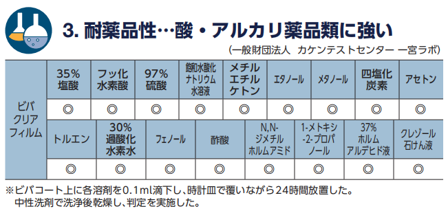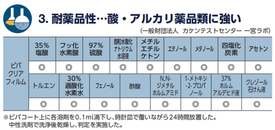 油・薬品に圧倒的に強い「ビバフィルム」3つの特長