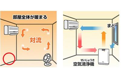天井に暖気がたまっていると、床付近が十分涼しくなっていても、エアコンはさらに部屋を涼しくしようと必要以上に運転してしまいます。