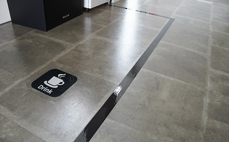高耐久なラインテープ 黒は歩行による摩擦に強く、貼り替えの手間を軽減します。