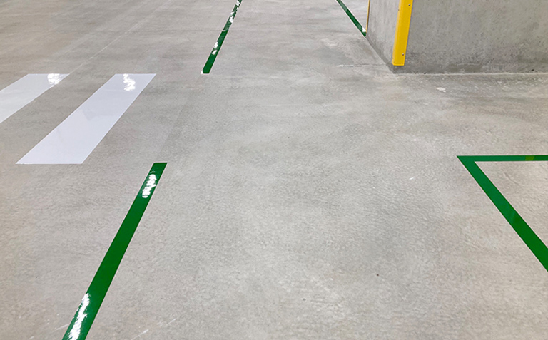 ラインテープは汚れやタイヤ痕などが目立ちがちですが、弊社のラインテープ 緑は汚れがついても、清掃によってサッとキレイにできるので、すぐに美観を取り戻せます。