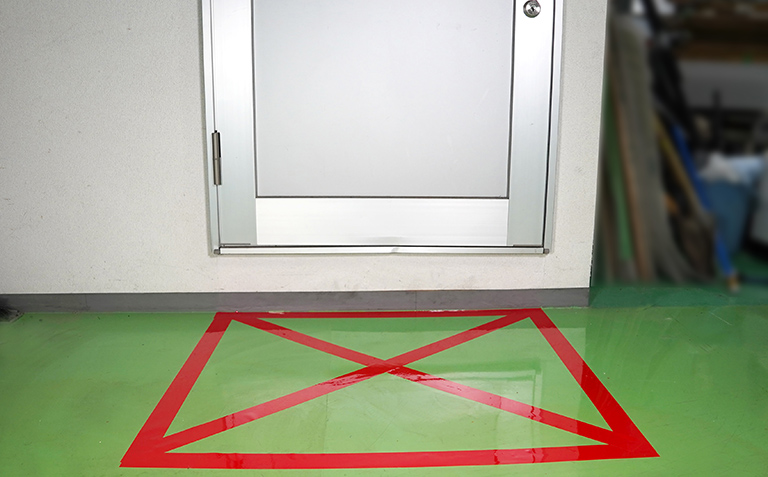 安全対策が必要なゾーンにラインテープを貼るだけで注意喚起に。