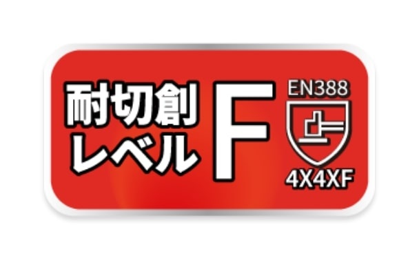 欧州における保護手袋の性能規格「EN388」にて、耐切創性は最高レベルFを獲得。
