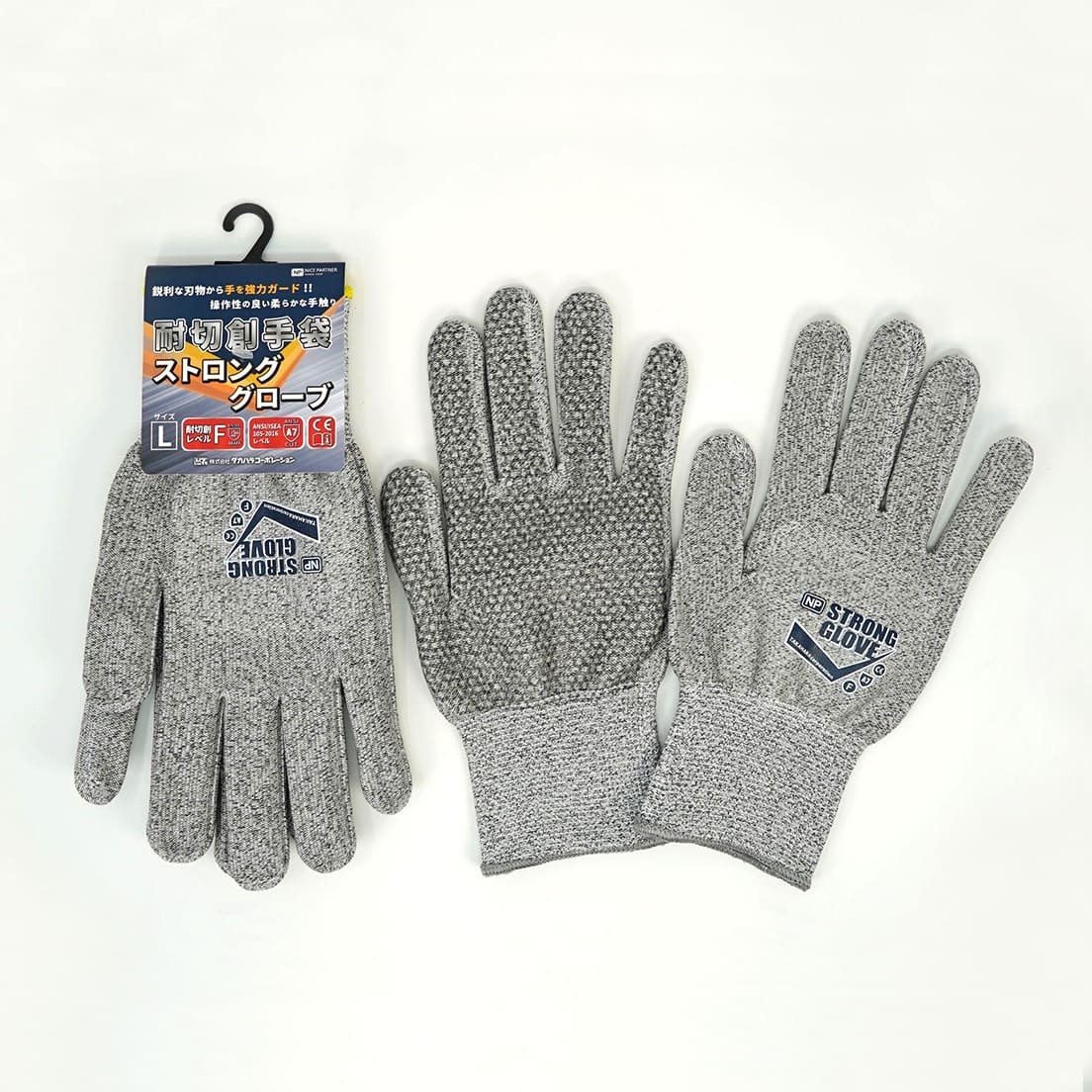「ストロンググローブ」は、刃物やガラス等の切り傷や作業中の怪我から手を保護する、耐切創手袋です。